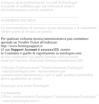 Il SUPPORT ACCOUNT non va confuso con la password usata per la registrazione su eurologon.com oppure con quella usata per accedere ad uno degli spazi hosting acquistati.