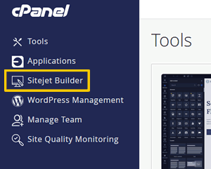 Clicca sul link "SiteJet Builder" nel menù di sinistra del pannello di controllo cPanel e attendi il caricamento della pagina