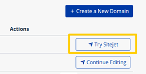 Clicca sul bottone"Try SiteJet" alla destra del tuo nome di dominio e attendi il caricamento dei template